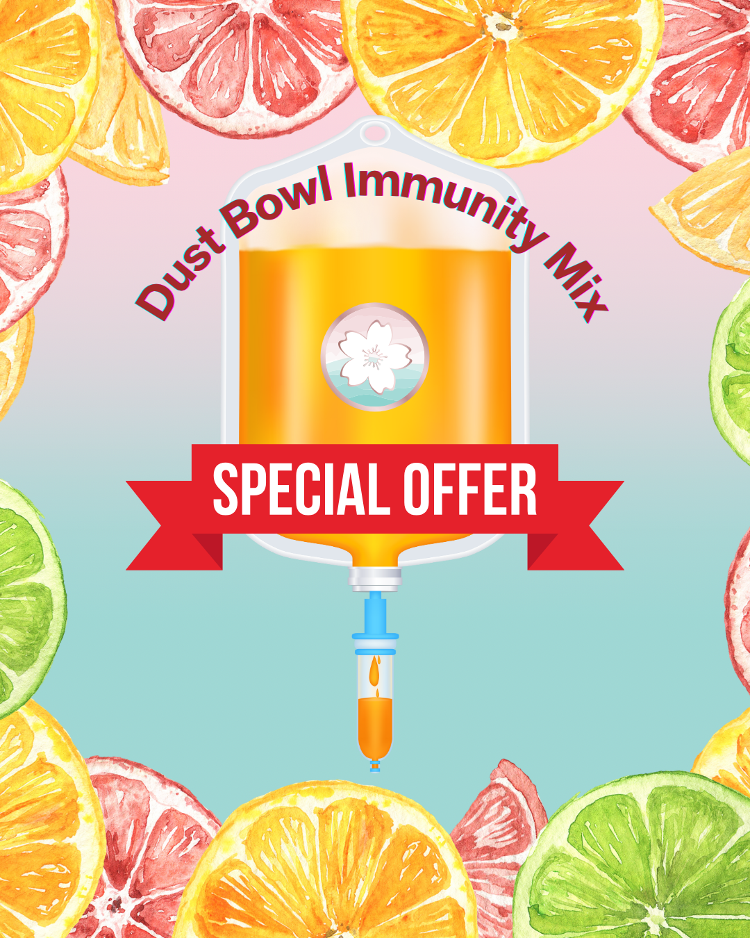 Dust Bowl Immunity IV Special! Gear up for cold and flu season with our signature immunity support IV! Now $30 off for a limited time.